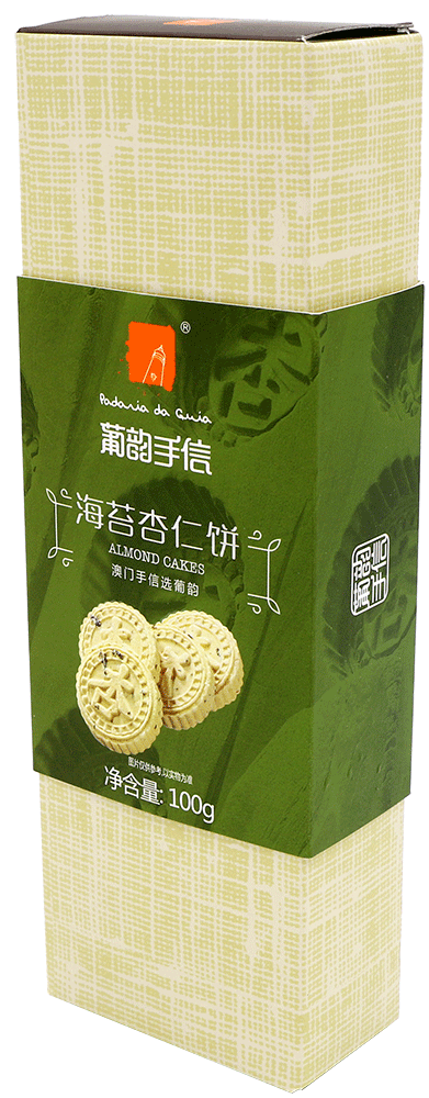 Guia Almond Cookies With Seaweed choose superior badam,peanut and seaweed,through baker carefully select and chop,concentrate on mix fresh mung bean powder, almond powder and natural vegetable oil together,make it have a pale green appearance,taste loose and delicious.